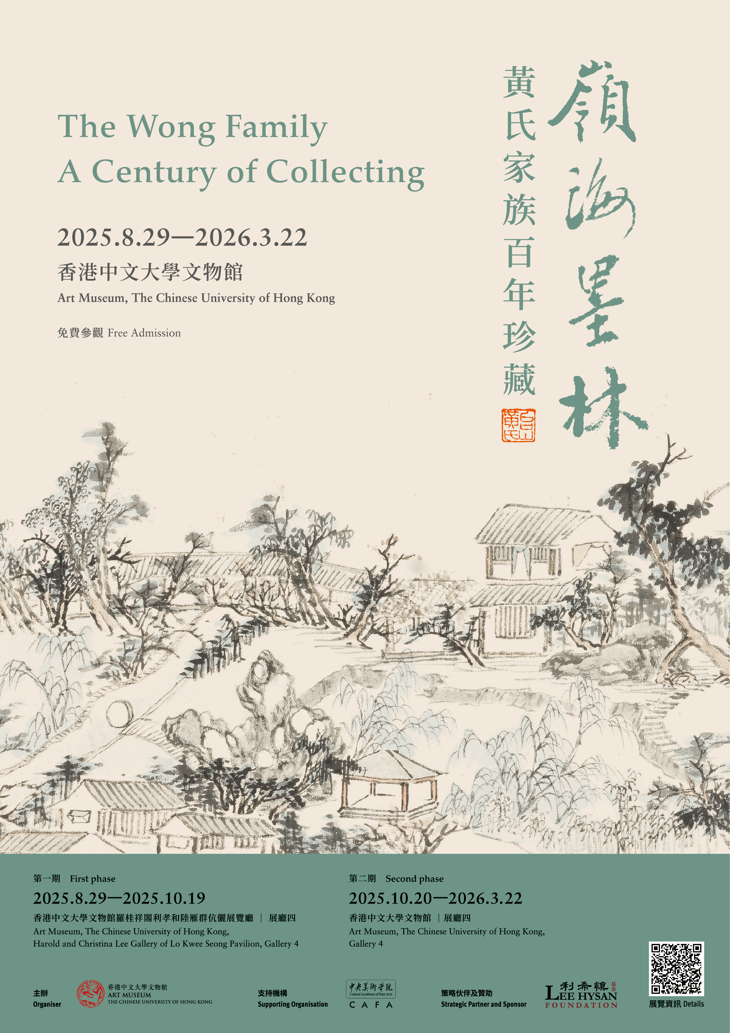 Since 1999, descendants of the Wong family have generously donated many of the family’s art collections to the Art Museum of The Chinese University of Hong Kong. In recognition of this, the Museum is pleased to present the exhibition "The Wong Family: A Century of Collecting" organised with the support of the Central Academy of Fine Arts. This exhibition pays tribute to the Wong family’s noble spirit and dedication in transforming private heritage into public wealth.