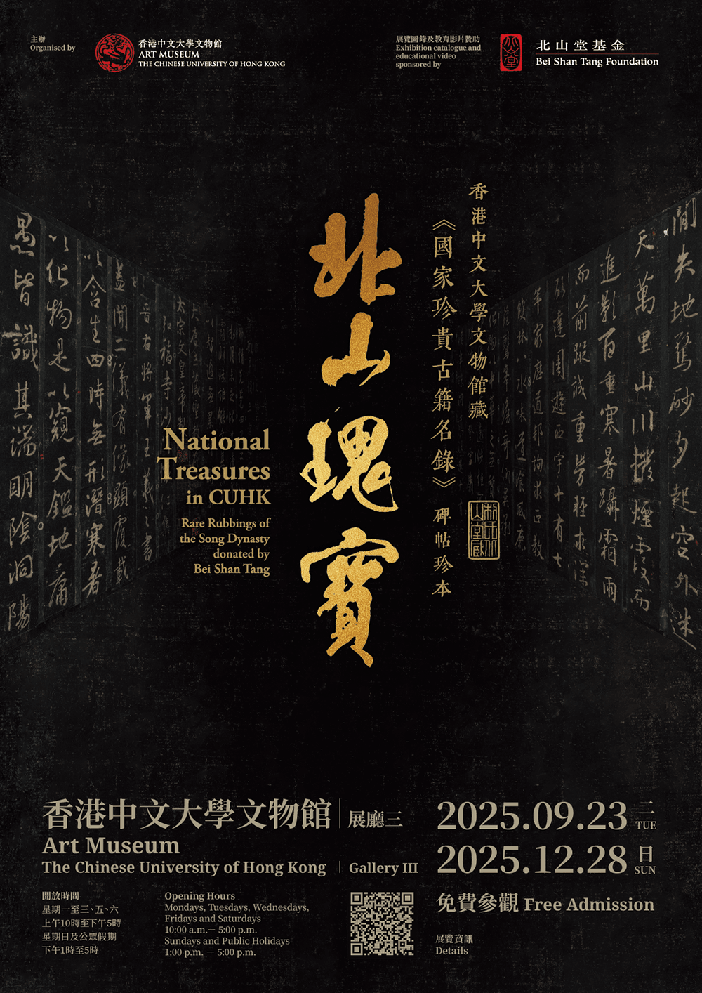 Following the resounding success of the 2023 exhibition “Rare Rubbings of the Song Dynasty” (宋拓魅力:碑帖珍本特展), co-organised by CUHK and the Palace Museum, Beijing, the CUHK Art Museum proudly presents this new special exhibition. Featuring 20 national treasure-class Song dynasty rubbings from the Bei Shan Tang collection, alongside more than 12 masterpieces of calligraphy and painting spanning the Yuan to Qing dynasties, the exhibition illuminates how these delicate ink impressions inspired generations of literati, shaping Chinese calligraphic traditions through seven centuries of artistic conversation—from antiquity to imperial China’s final golden age.